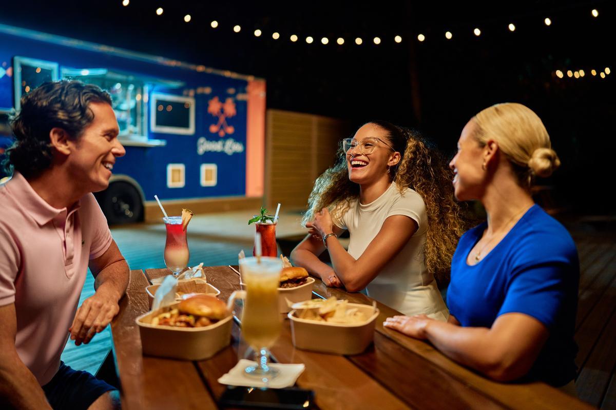 After your round, swing by our sports bar for refreshing cocktails and savory bites that are as enticing as our greens. Share your best (or worst) golfing stories. Enjoy classic outdoor games like cornhole and ring toss. Perfect for those who want to channel their competitive spirit while catching their favorite sports teams on TV at the outdoor bar. After all, what happens on the course stays on the course—unless it’s too good not to share! And don’t forget to challenge your friends to a game of “Two Truths and a Lie” over drinks; it’s the perfect way to keep the laughter rolling!